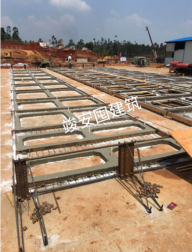 服務(wù)熱線: 四川竣安囤建筑工程有限公司為專業(yè)預(yù)應(yīng)力拱板施工公司,公司注冊資本為1000萬元。公司經(jīng)營范圍:住宅房屋建筑、房屋建筑工程、市政公用工程、土石方工程服務(wù)、防水防腐保溫工程、鋼結(jié)構(gòu)工程、橋梁工程、公路交通工程、地基基礎(chǔ)工程、園林綠化工程施工、水利水電工程、建筑裝飾工程、建筑勞務(wù)分包、砼結(jié)構(gòu)構(gòu)件制造、預(yù)應(yīng)力工程專業(yè)承包。 公司現(xiàn)有專業(yè)技術(shù)人員22人,均從事預(yù)應(yīng)力拱板施工超過10余年,技術(shù)力量強(qiáng)大,現(xiàn)場施工經(jīng)驗(yàn)豐富,能適應(yīng)各種預(yù)應(yīng)力拱板施工,專業(yè)技術(shù)工人500余人,專業(yè)隔板施工人員60人,木工120人,鋼筋工90人,混凝土工150人,專業(yè)電工、焊工20余人,專業(yè)張拉機(jī)手35人,專業(yè)拱板高空滑移就位人員50人,能進(jìn)行10余個(gè)工地同時(shí)施工。 公司先后承建了中儲(chǔ)糧荊門直屬庫掇刀分庫、中儲(chǔ)糧監(jiān)利直屬庫、 湖北省荊州川店儲(chǔ)備庫、湖北省咸寧儲(chǔ)備庫、湖南岳陽儲(chǔ)備庫、廣安火車站中直糧庫、湖北江陵儲(chǔ)備庫、湖北孝感儲(chǔ)備庫、廣安武勝國家糧庫、重慶秀山國家糧庫、云南玉溪紅塔區(qū)糧庫、云南西山區(qū)國家糧庫、云南曲靖陸良國家糧庫、云南江川糧庫、云南曲靖市糧庫、四川瀘縣嘉明糧庫、四川邛崍固驛種子庫、四川遂寧安居中直庫、云南石林糧倉、云南楚雄牟定糧庫、云南綏江縣糧庫、四川廣安儲(chǔ)備庫、云南盈江拆舊建新糧庫、貴州畢業(yè)糧庫、云南嵩明糧庫、重慶南川儲(chǔ)備庫、云南石林糧庫、遂寧直屬庫安居分庫、云南祿勸糧庫、綿陽三臺(tái)直屬庫、重慶渝西南糧庫、重慶墊江儲(chǔ)備庫、重慶永川儲(chǔ)備庫、重慶梁平儲(chǔ)備庫、重慶忠縣儲(chǔ)備庫、重慶江津儲(chǔ)備庫、重慶黔江儲(chǔ)備庫、黔江軍糧站、成都新都儲(chǔ)備庫、四川彭州儲(chǔ)備庫、四川蒙陽儲(chǔ)備庫、四川什邡儲(chǔ)備庫、四川遂寧儲(chǔ)備庫、廣安回龍儲(chǔ)備庫、達(dá)州開江物流園儲(chǔ)備庫、大理巍山儲(chǔ)備庫、大理云龍儲(chǔ)備庫、大理祥云儲(chǔ)備庫、云南威信儲(chǔ)備庫、昆明祿勸儲(chǔ)備庫、普洱景東儲(chǔ)備庫、臨滄雙江儲(chǔ)備庫、昭通大關(guān)儲(chǔ)備庫、楚雄南華儲(chǔ)備庫,庫房跨度24米。 公司專業(yè)承接預(yù)應(yīng)力拱板板制作,采用空中預(yù)制施工工藝,僅需在室內(nèi)地面進(jìn)行拱板隔板預(yù)制。重點(diǎn)在高空利用原有部分圈梁進(jìn)行加固改造形成張拉臺(tái)座,完成下弦板預(yù)應(yīng)力張拉,一次性完成拱板屋架混凝土澆筑,待拱板屋架整體砼達(dá)到設(shè)計(jì)強(qiáng)度時(shí),實(shí)施放張,用千斤頂頂起拱板放置專用滑輪車上,運(yùn)用卷揚(yáng)機(jī)在水平圈梁上滑移至設(shè)計(jì)安裝位置。本工藝不需搭設(shè)滿堂腳手架(僅局部搭設(shè)),不需大型機(jī)械吊裝,不需大型堆碼場地,比地下預(yù)制成本低,安全可靠。比滿堂腳手架耗材少,是一種經(jīng)濟(jì)實(shí)用型工藝。
